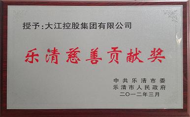 2012年3月27日上午9時(shí),樂(lè)清市慈善大會(huì)在市政府會(huì)議中心隆重召開(kāi),市委書(shū)記潘孝政出席大會(huì)并做重要講話,大江電氣集團(tuán)有限公司被樂(lè)清市慈善總會(huì)評(píng)為“樂(lè)清慈善貢獻(xiàn)獎(jiǎng)”稱(chēng)號(hào)。